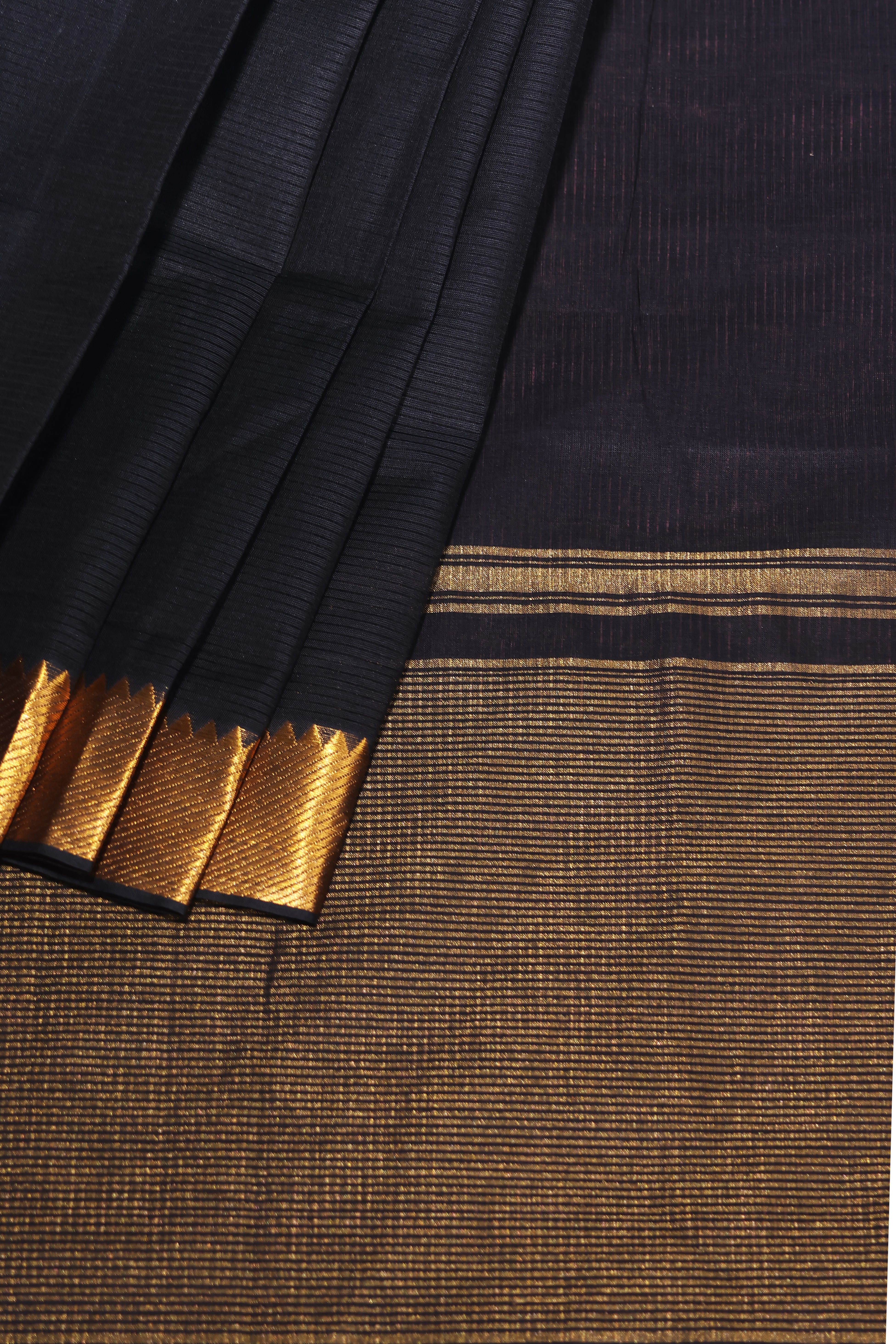 Black Mangalgiri Cotton Saree with Broad Gold Nizam Border