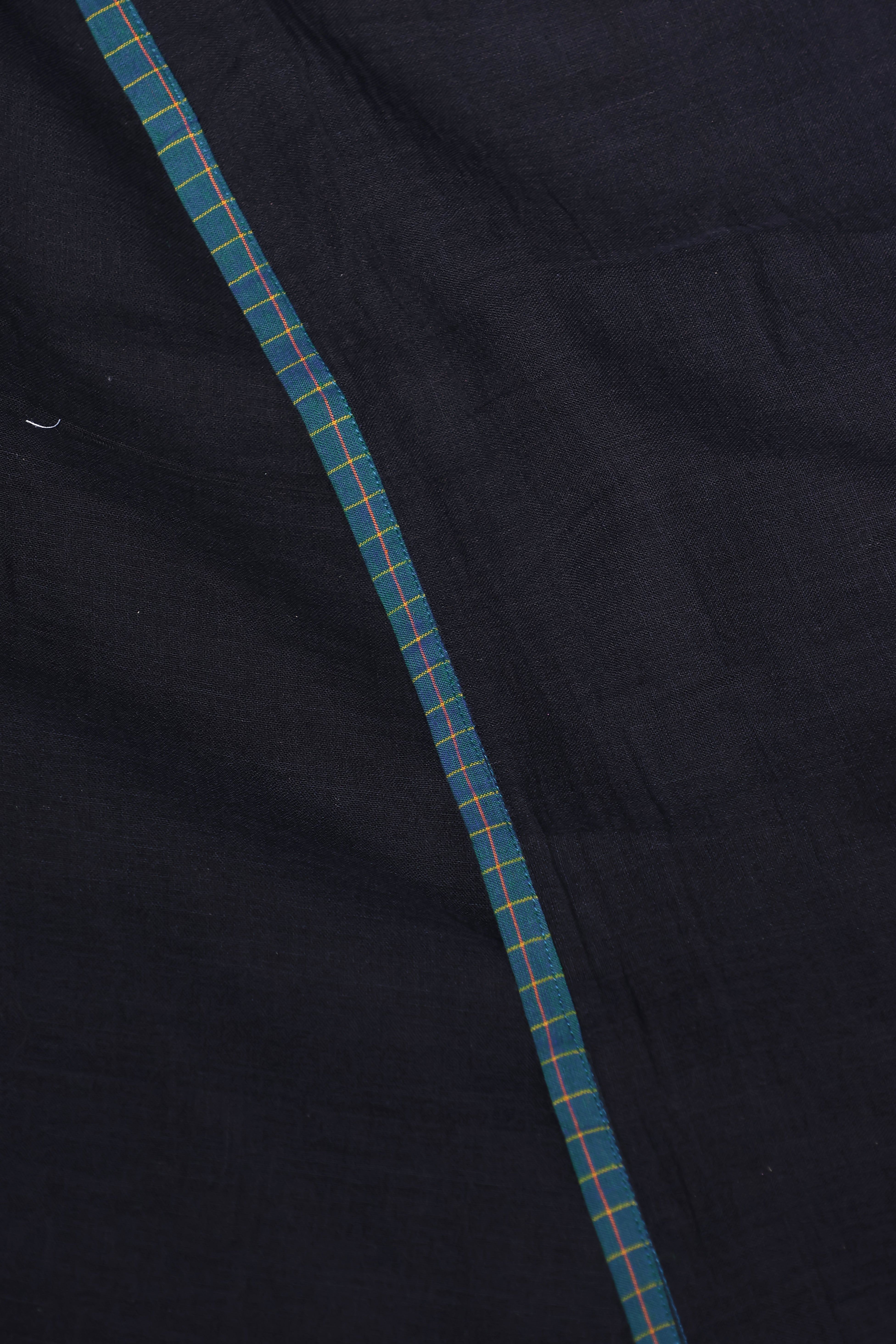 H.O.T curated - Black Mul cotton with Ajrakh and green chettinad checks border - The lotus pallu