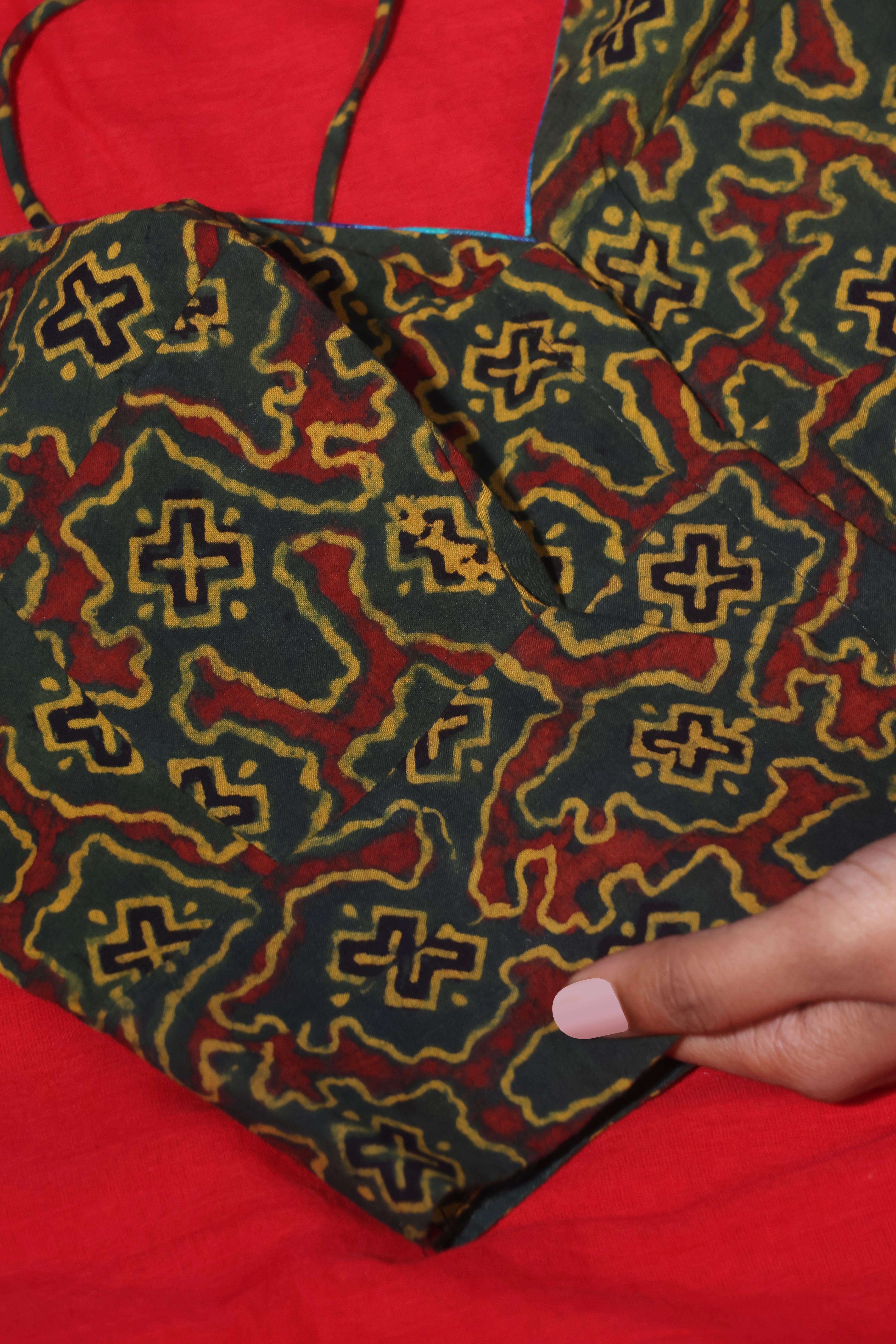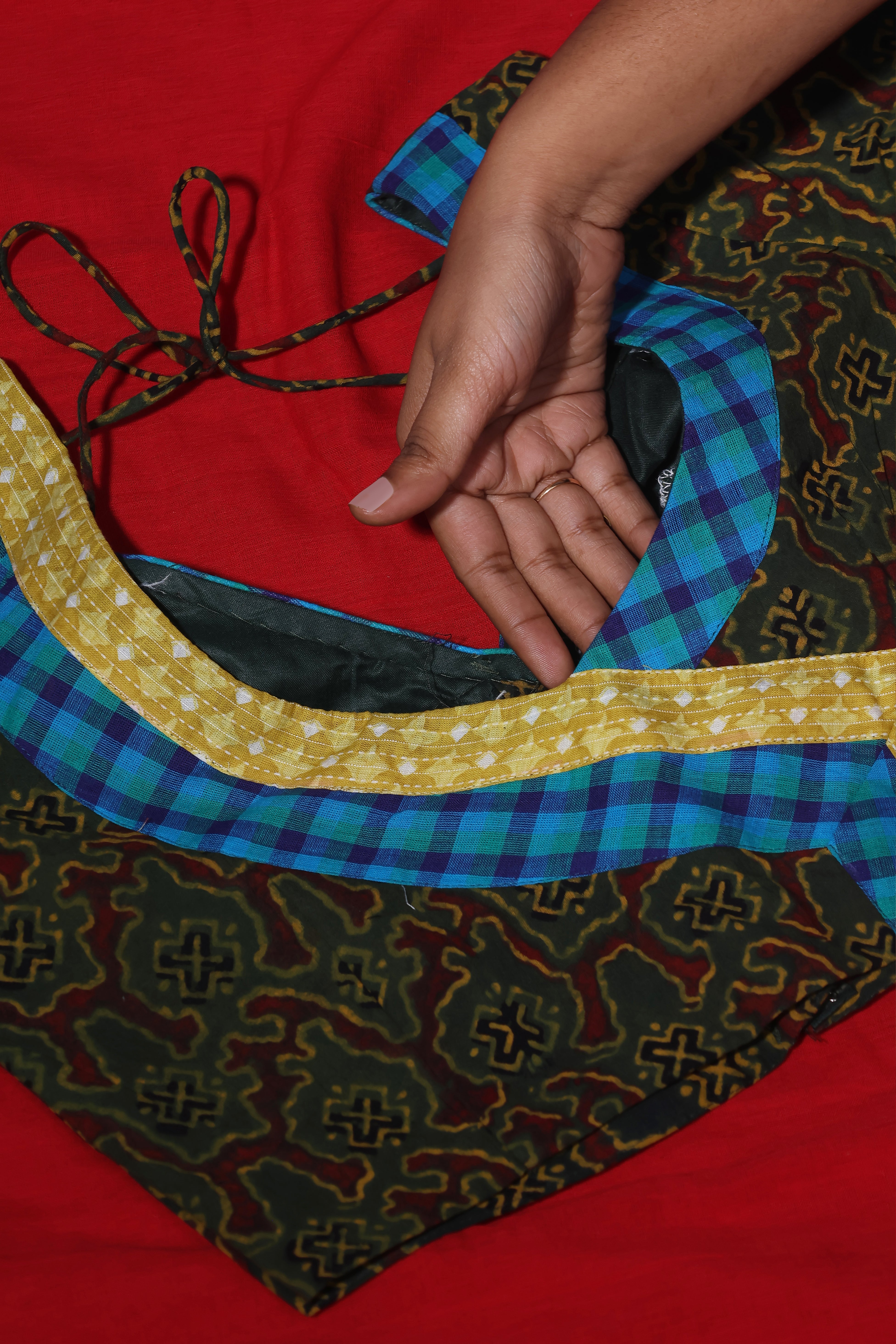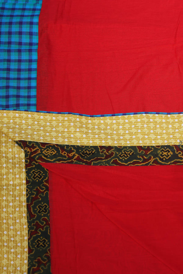 H.O.T curated - Red Mull Drama with Blue Mangalgiri reverse border.