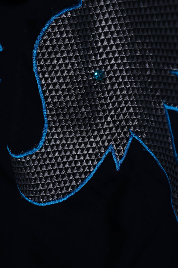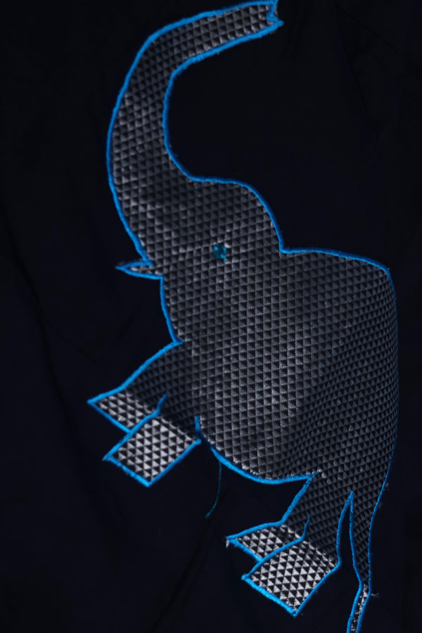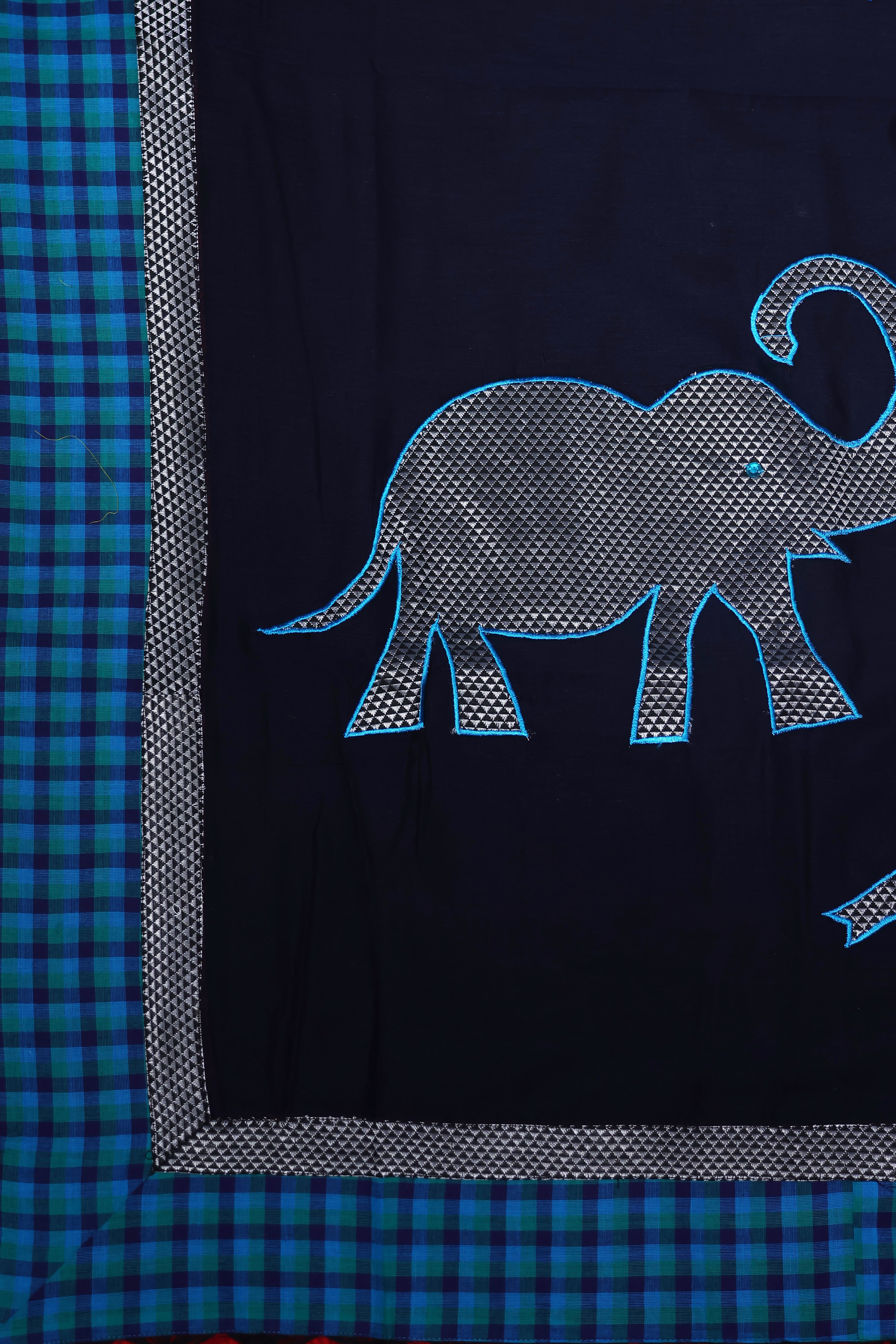 H.O.T curated- The navy blue drama - Red reverse border - Gajapathy Appliqué.