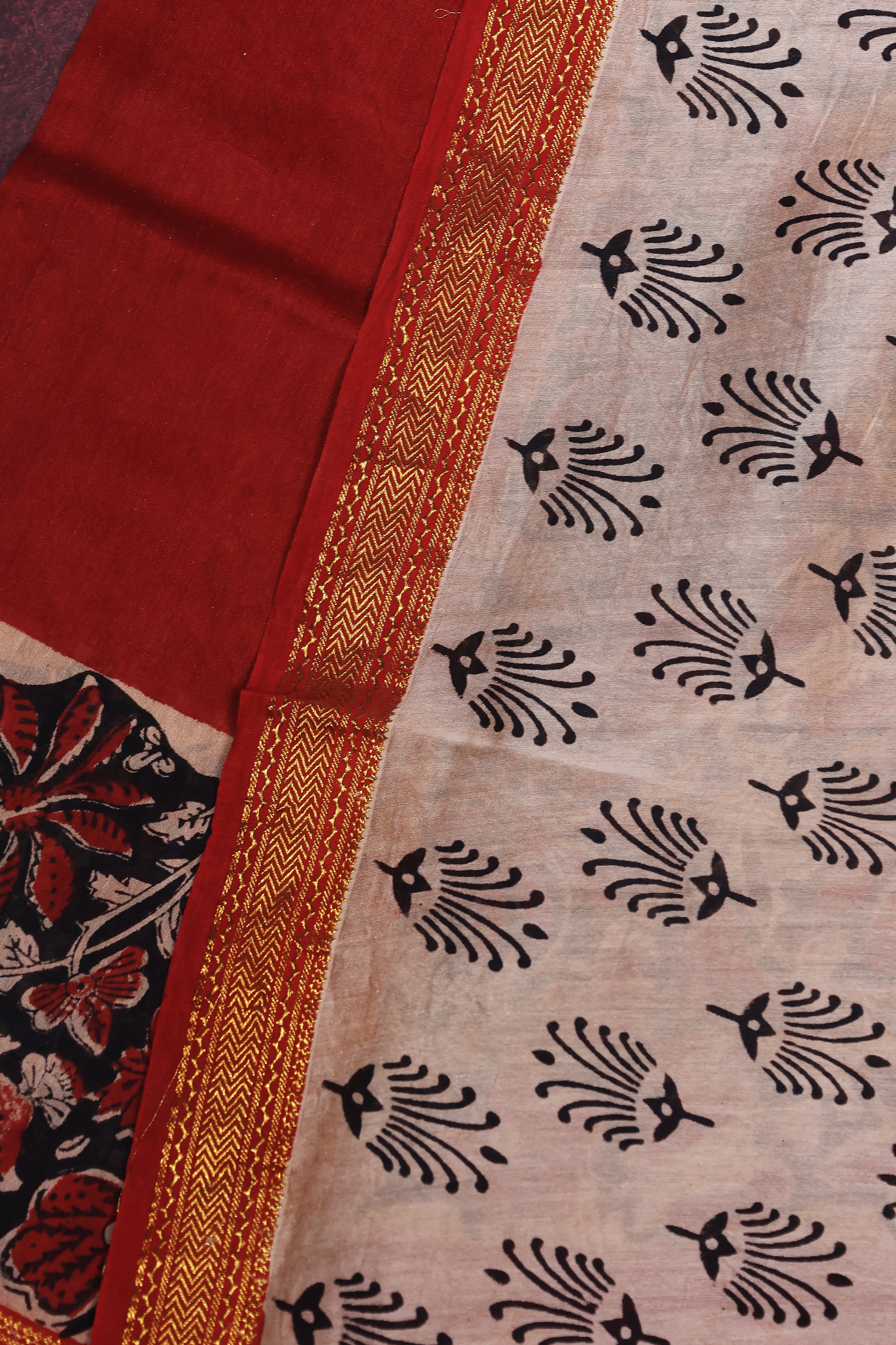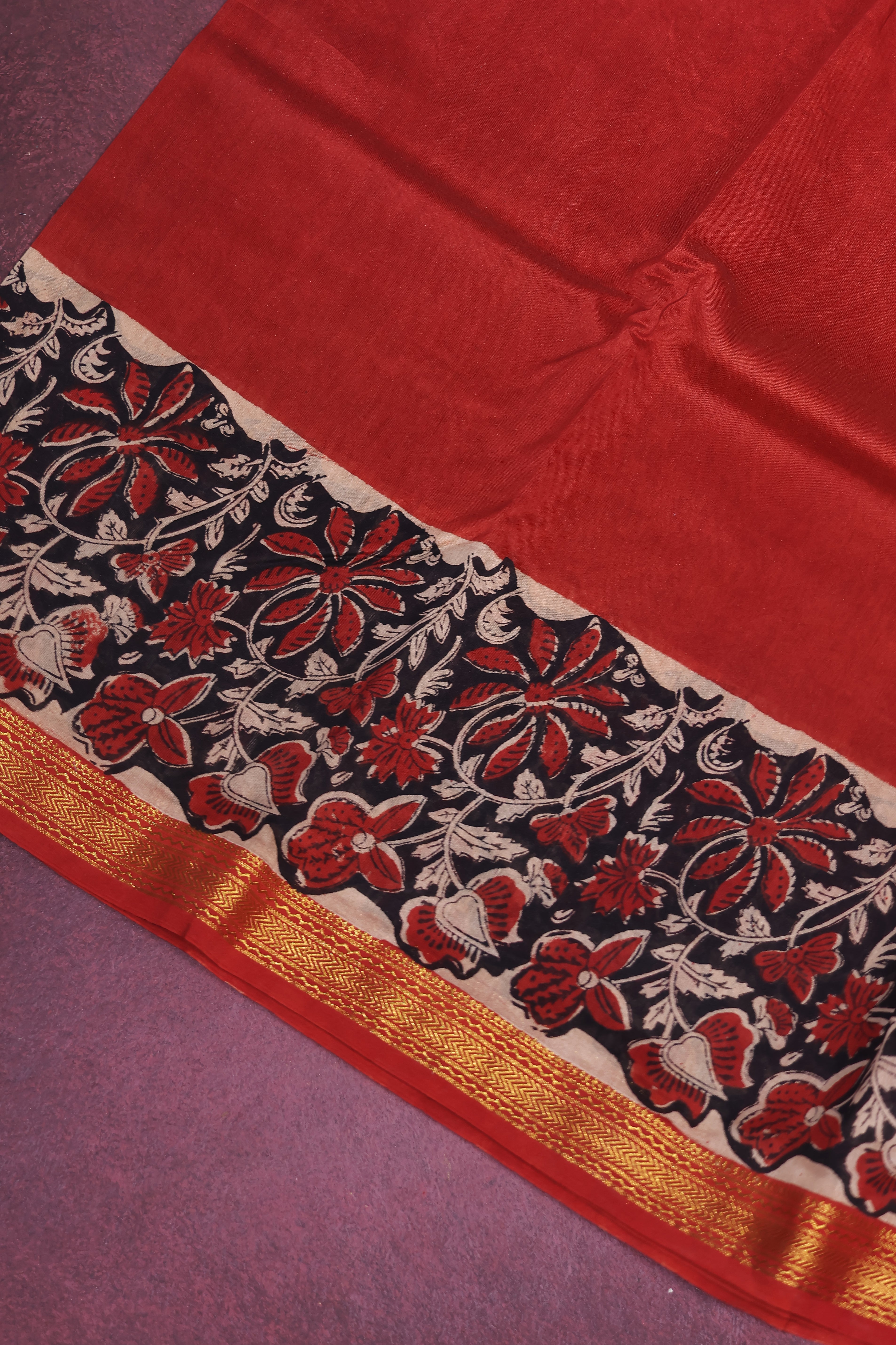 Add timeless elegance to your wardrobe with this rusty red Maheshwari silk cotton saree, featuring a hand-block printed Ajrakh border that adds vibrant contrast and artisanal charm. The luxurious blend of silk and cotton ensures a lightweight, comfortable drape with a subtle sheen, perfect for both traditional and contemporary occasions.