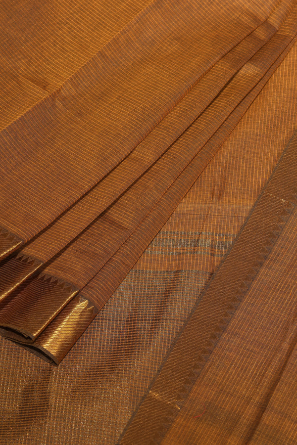 Mangalgiri Cotton Saree with Broad Gold Nizam Border- Mustard brown