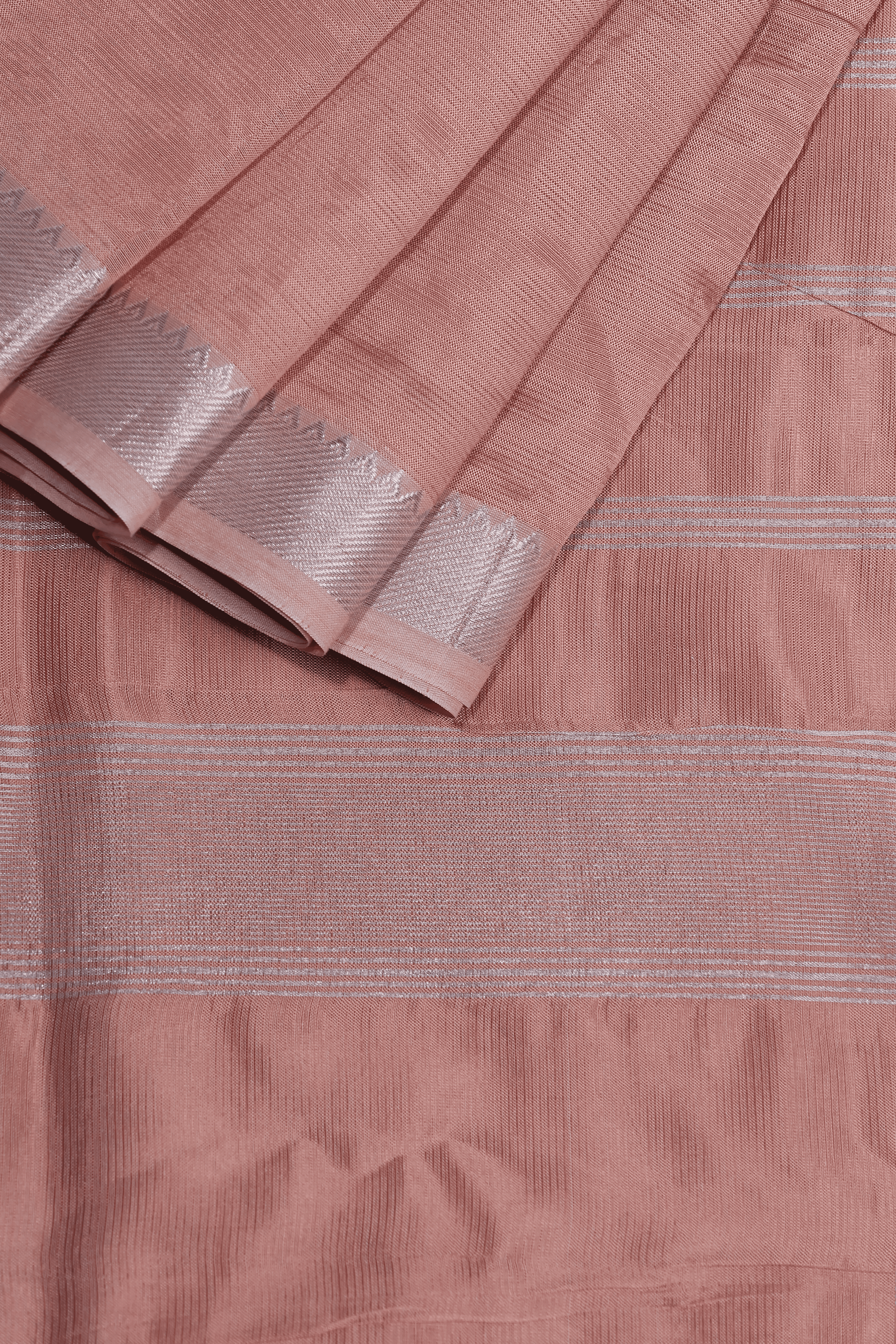 Mangalgiri Silk - Peach cream with silver nizam border