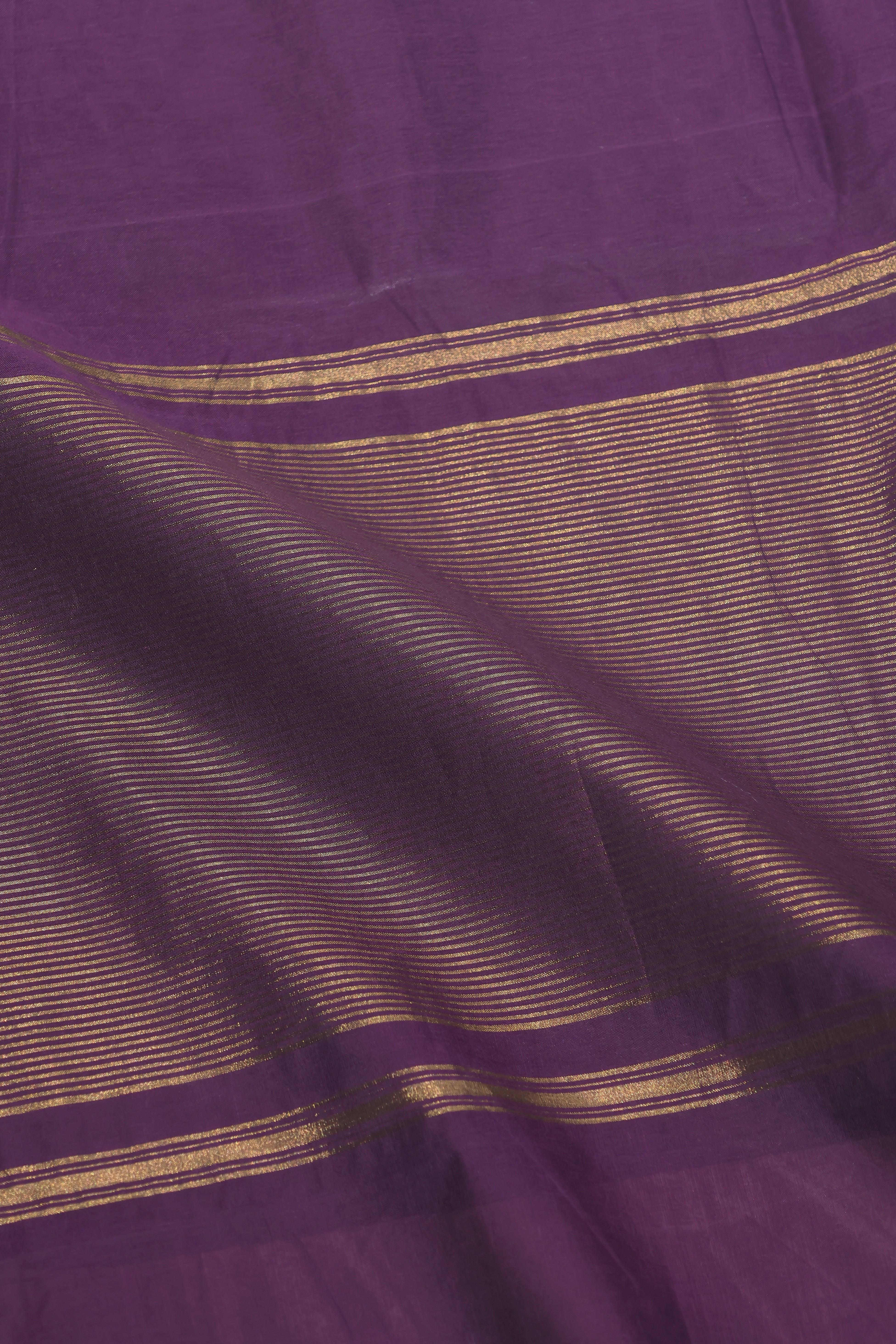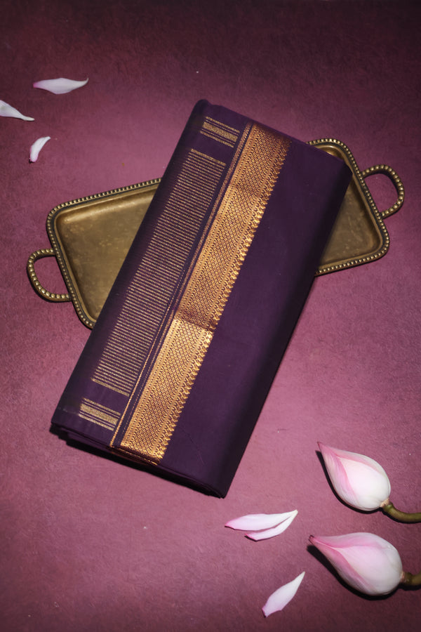 Purple Mangalgiri Cotton Saree with Broad Gold Nizam Border