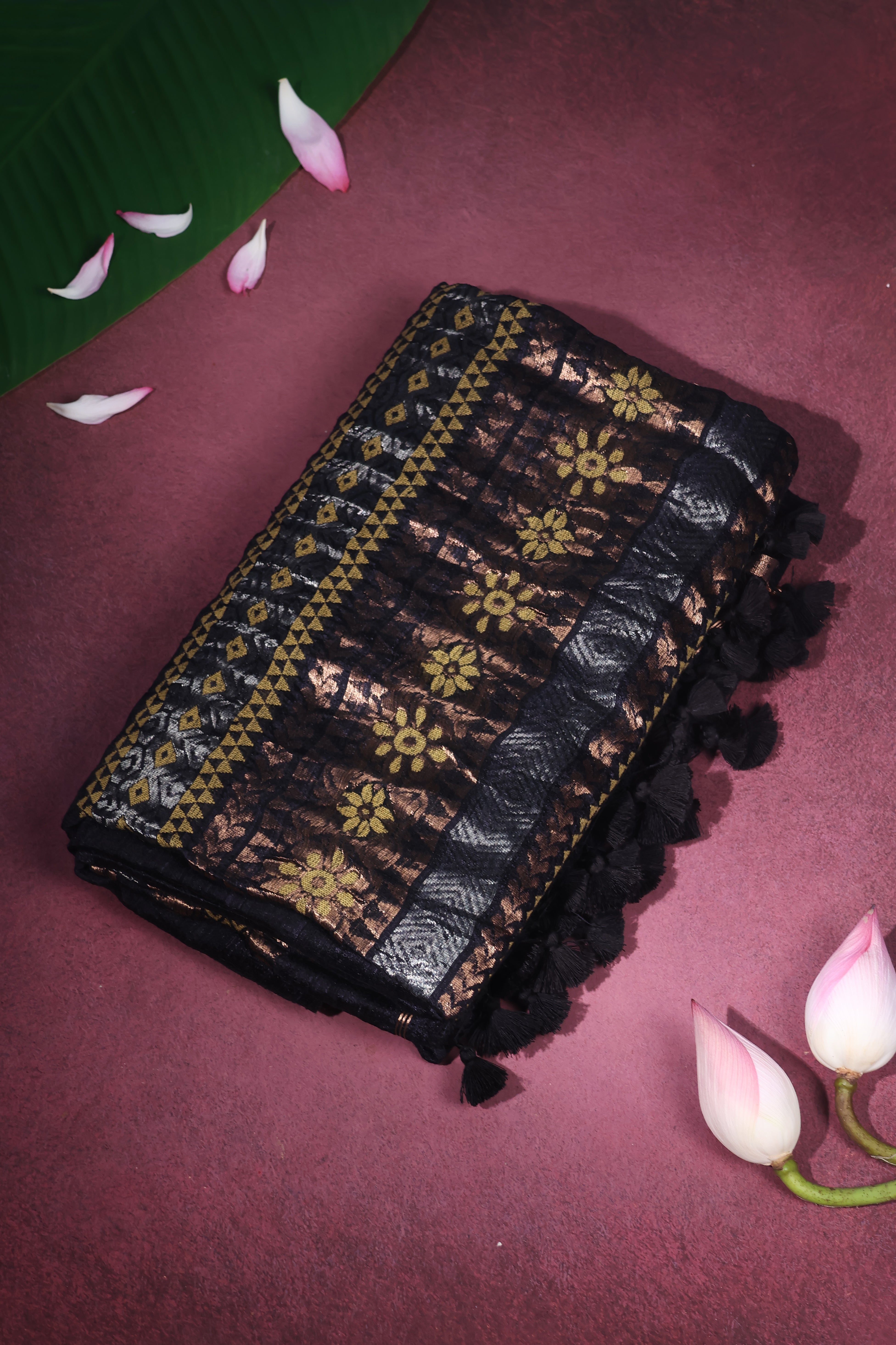 Shyama - Pure handwoven Matka silk with a Benarasi woven Anchal