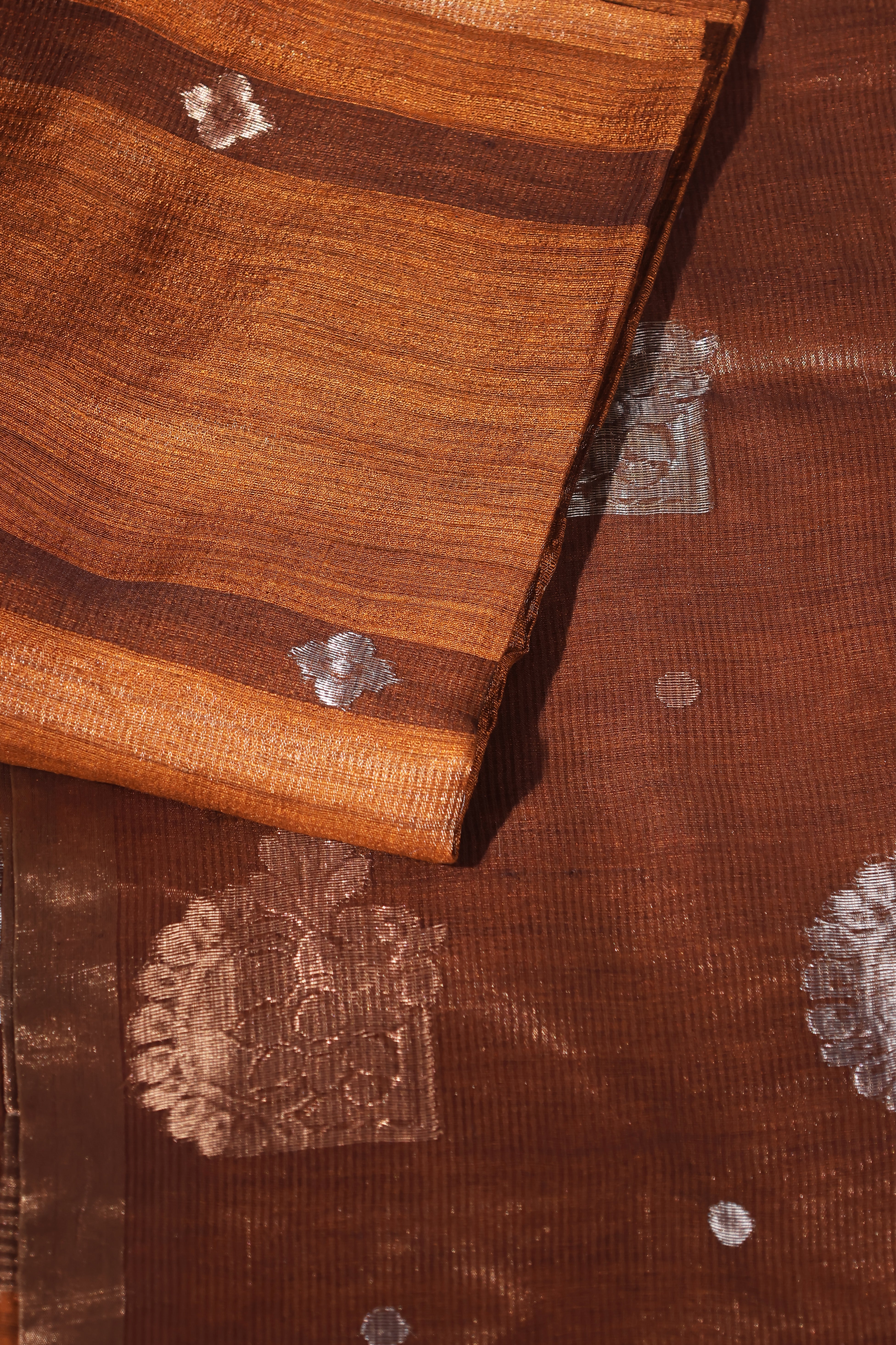 Tamra Tara – Copper Brown Matka Muslin Silk Saree
