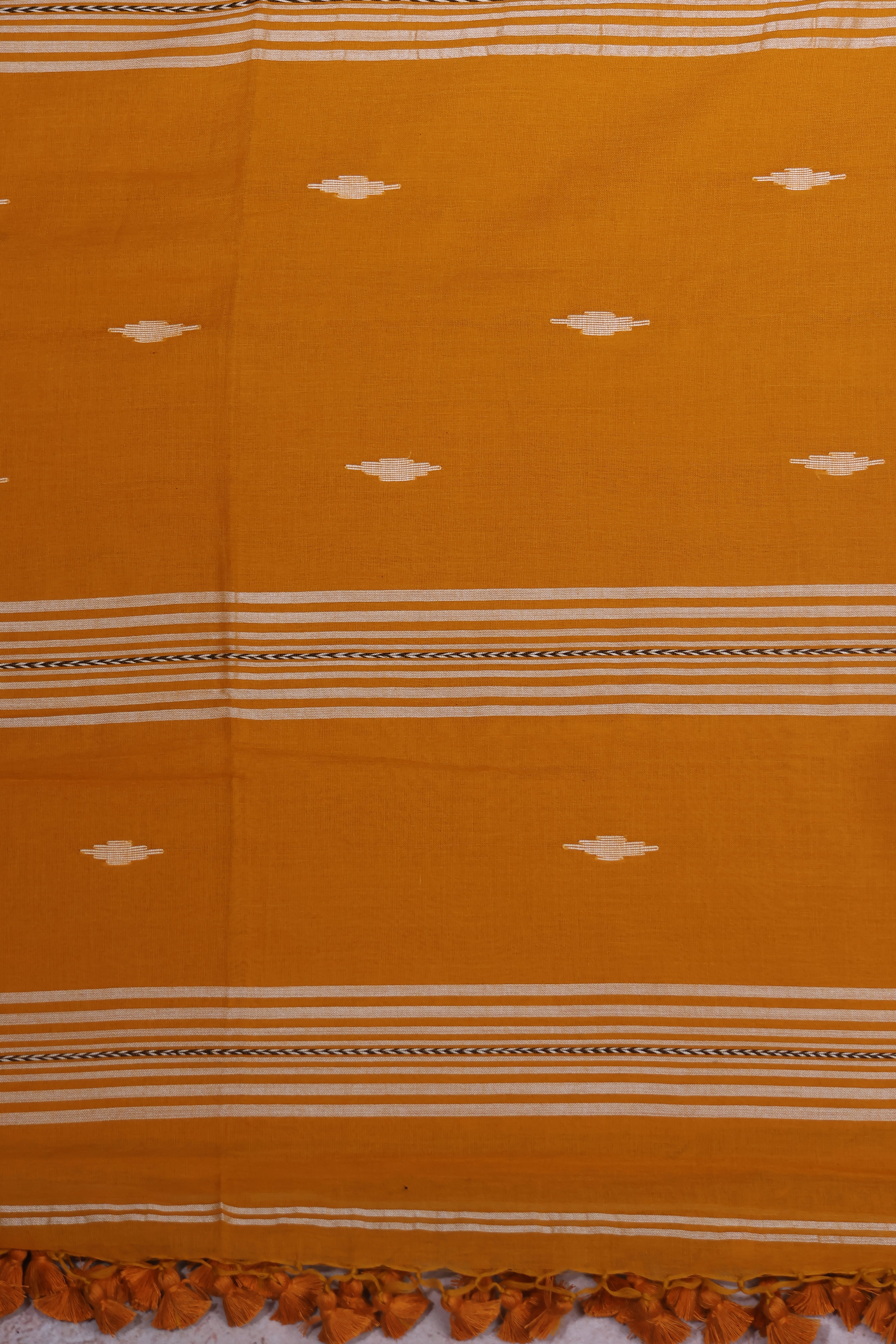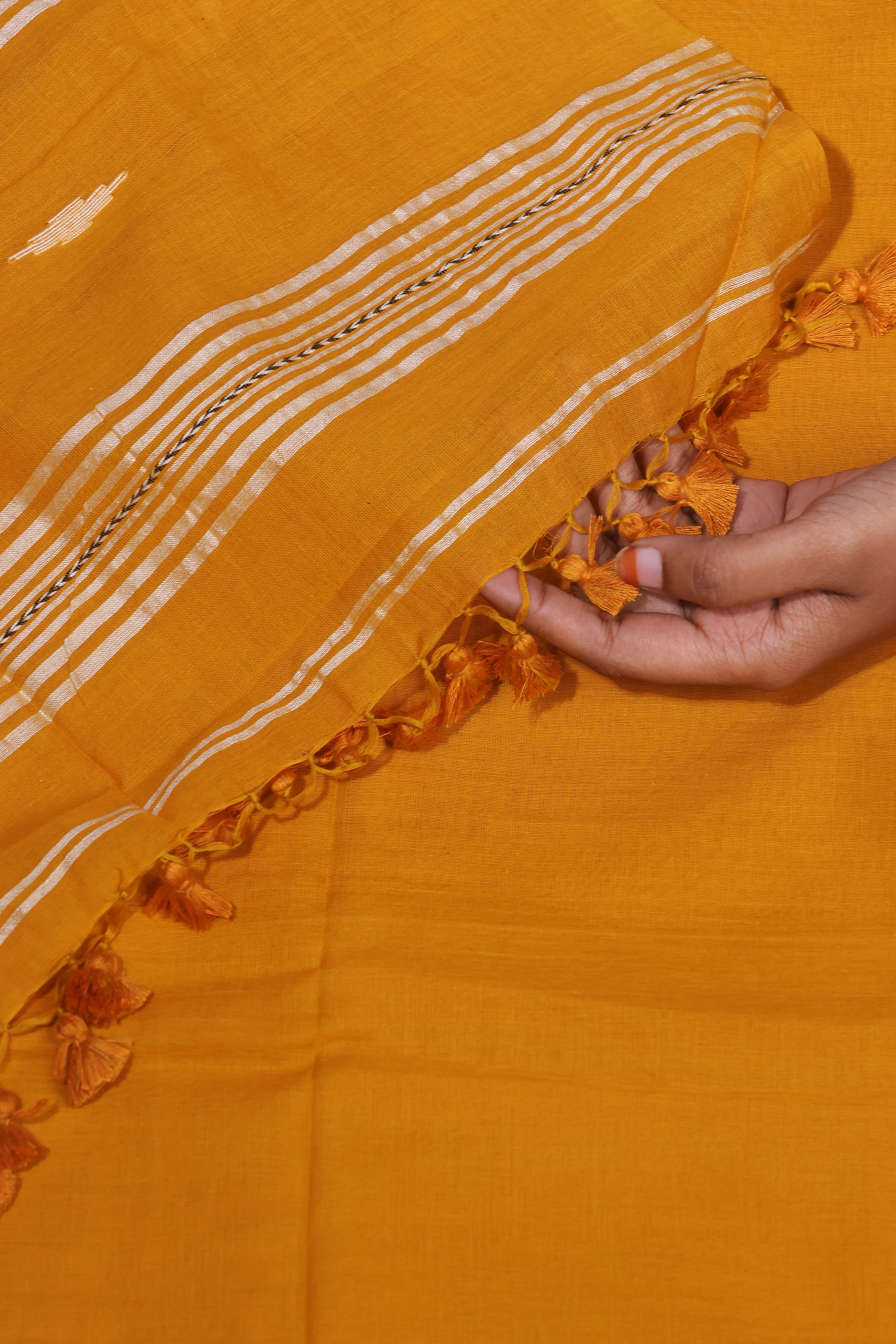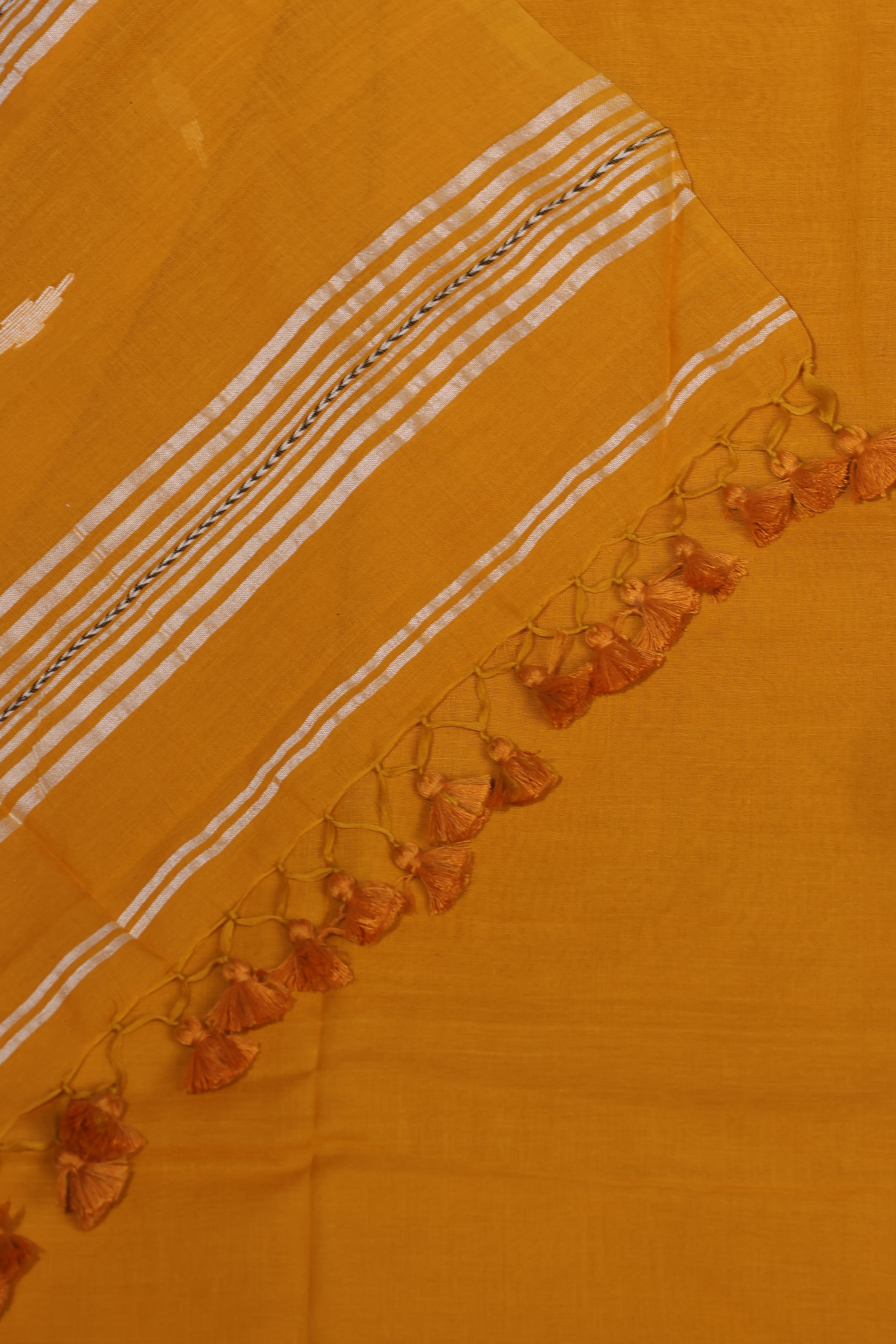 Yellow Jamdani Cotton Saree with Khesh Anchal